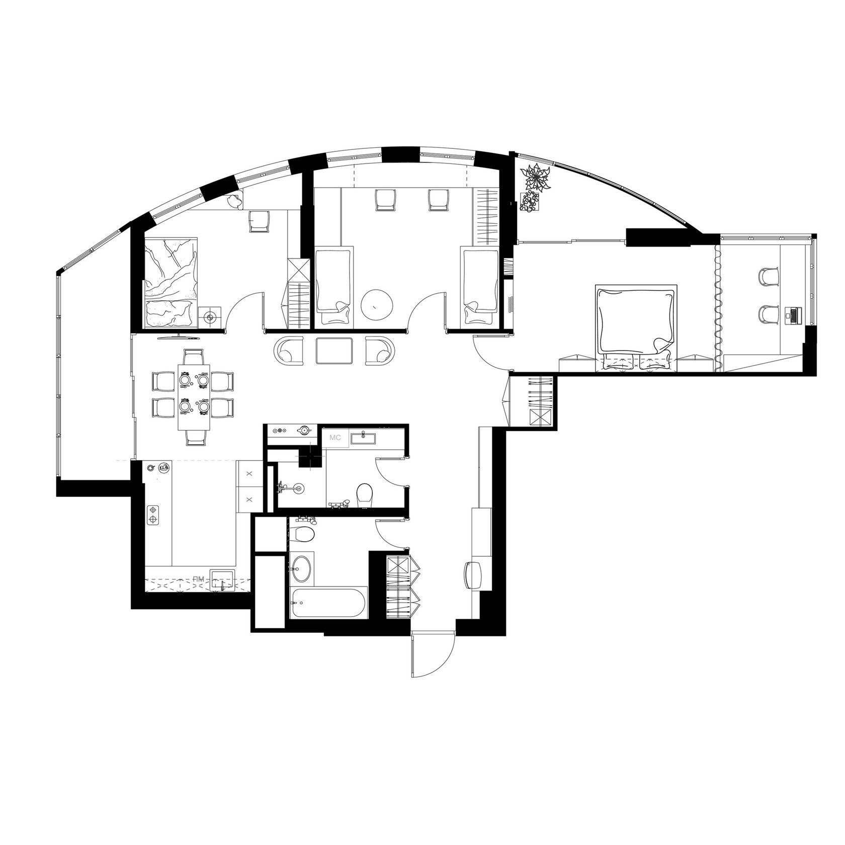 Данный проект примечателен тем, что в итоге заказчики отказались от гостиной в обычном ее понимании. Вместо гостиной появилась мягкая зона, где два кресла и кофейный столик. В итоге у нас получилась планировка, которая отвечала всем требованиям клиентов, нам тоже понравился финальный результат.