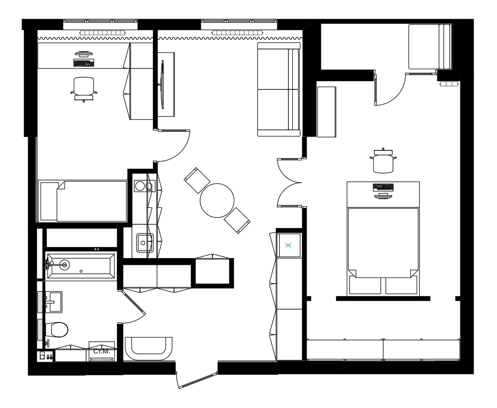 Нам было необходимо сделать просторную кухню-гостиную, спальню с гардеробной комнатой, ванную комнату и кабинет, который в последствии станет детской. Согласовали планировку c первого раза.